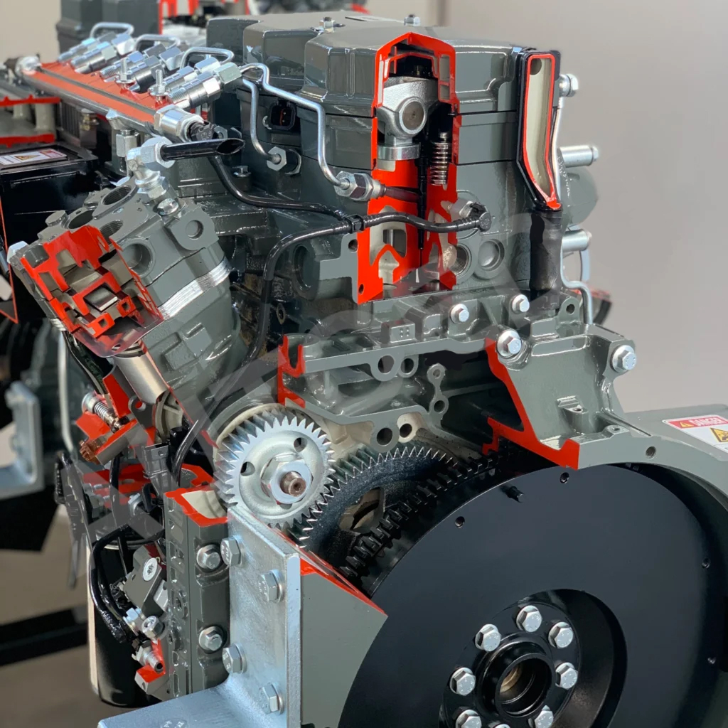 Moteur diesel 6 cylindres « IVECO » complet en coupe, avec entraînement électrique