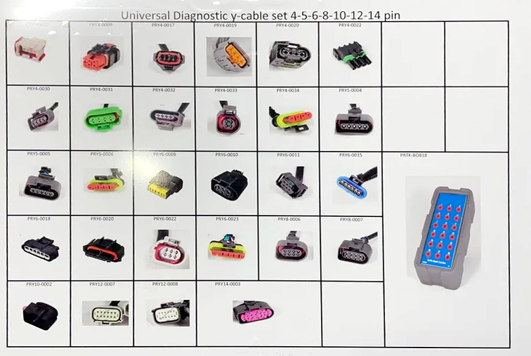 Kit pour le diagnostic auto, qui comprend une large gamme de câbles en Y, associés à une solution de dérivation, permettant aux techniciens d'effectuer des mesures précises directement sur les composants, sans avoir recours à des tests de continuité.