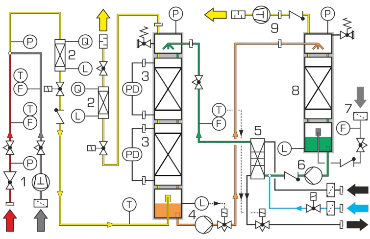 La colonne dabsorption en deux parties est équipée de 2 capteurs de pression différentielle pour la saisie des pertes de charge.