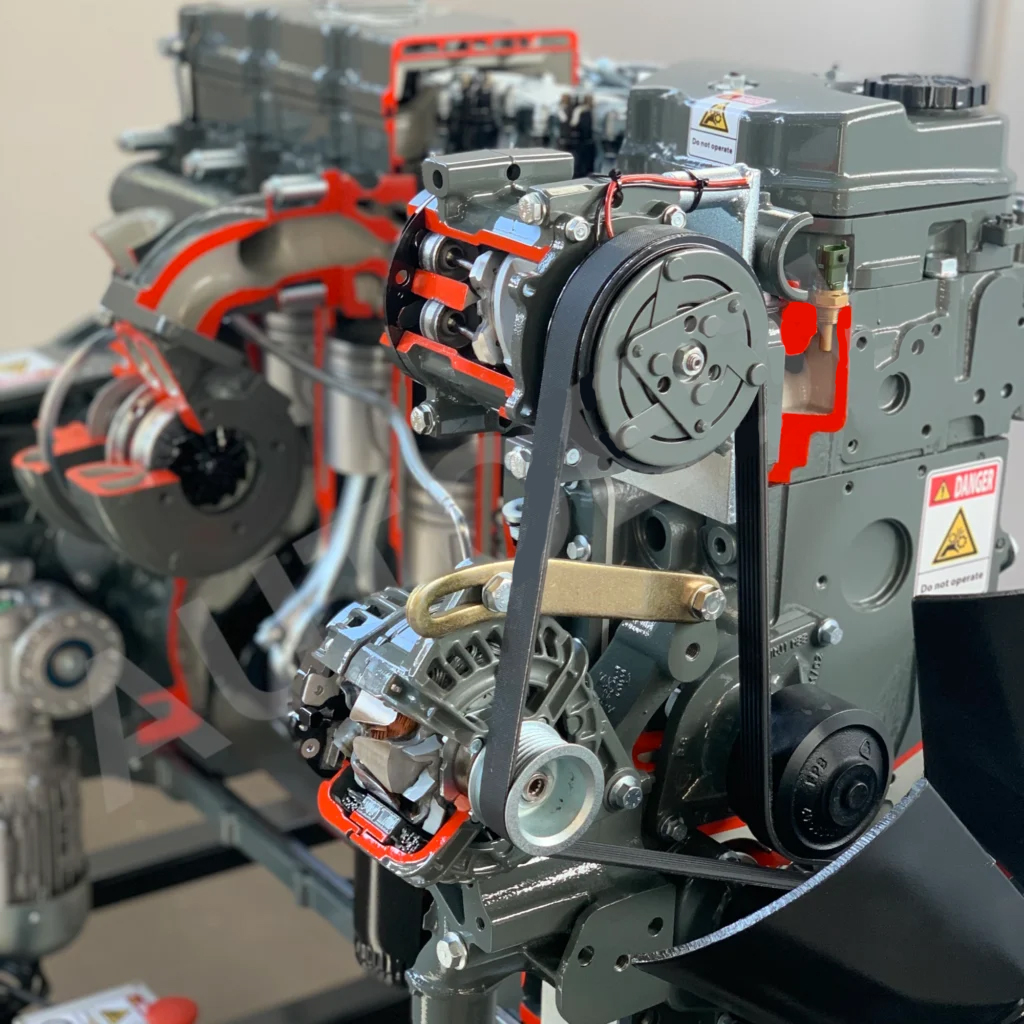 Ce modèle en coupe est soigneusement découpé à des fins pédagogiques et peint professionnellement de différentes couleurs afin de mieux différencier les différentes pièces, les sections transversales, les circuits de lubrification, le système d'alimentation en carburant, le système de refroidissement, etc.