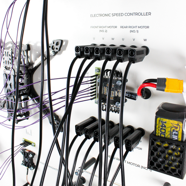 Banc d'étude de drône à 4 moteur, avec partie mécanique et électronique