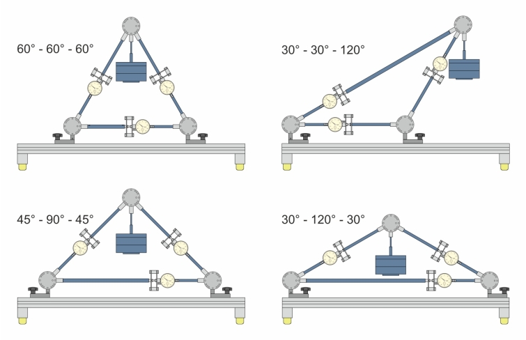 Lappareil se compose de trois barres reliées lune à lautre de manière articulée via des disques de jonction.