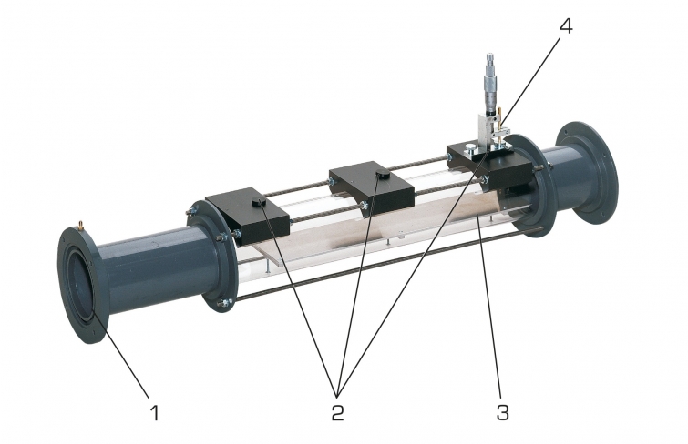 L'utilisation de l'appareil dessai HM 220.02 dans l'installation d'essai HM 220 permet de réaliser des mesures et des études de couches limites dans des écoulements.