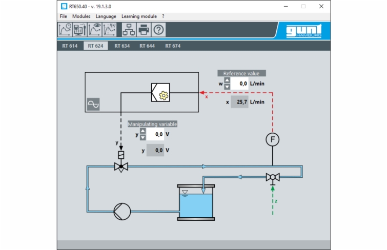 - avec l'accessoire RT 650.40: apprentissage et application d'un logiciel de mesure, de commande et de régulation