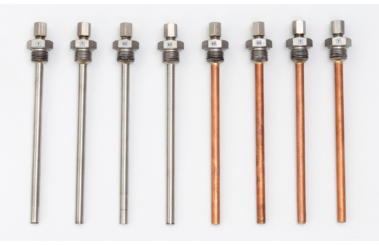 Pour faire varier la réponse, les capteurs de température du thermocouple et du thermomètre à résistance dans des doigts de gant en cuivre ou en acier inoxydable.
